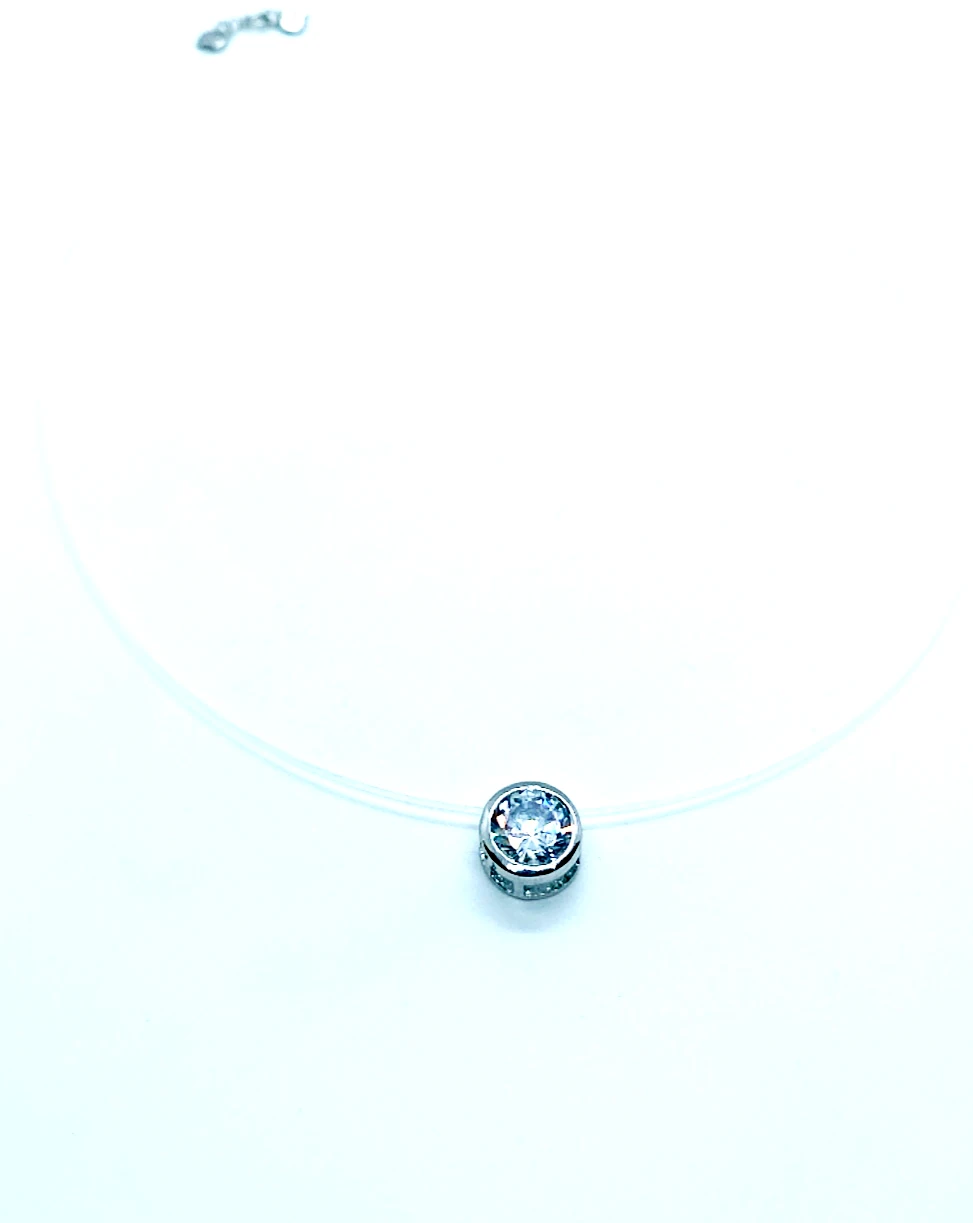 Дамско сребърно колие с прозрачна корда и блестящ циркон в центъра. Елегантен и минималистичен аксесоар.
